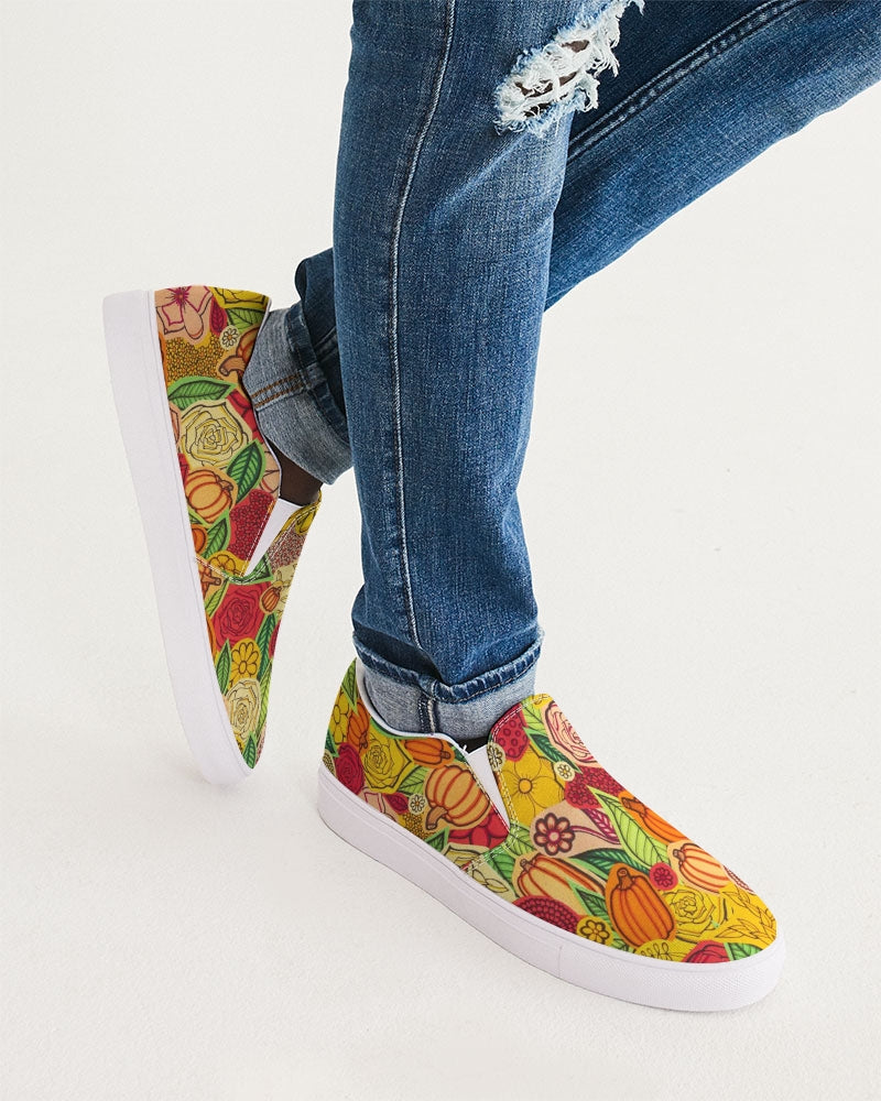 Citrouilles et Fleurs Men's Slip-On Canvas Shoe