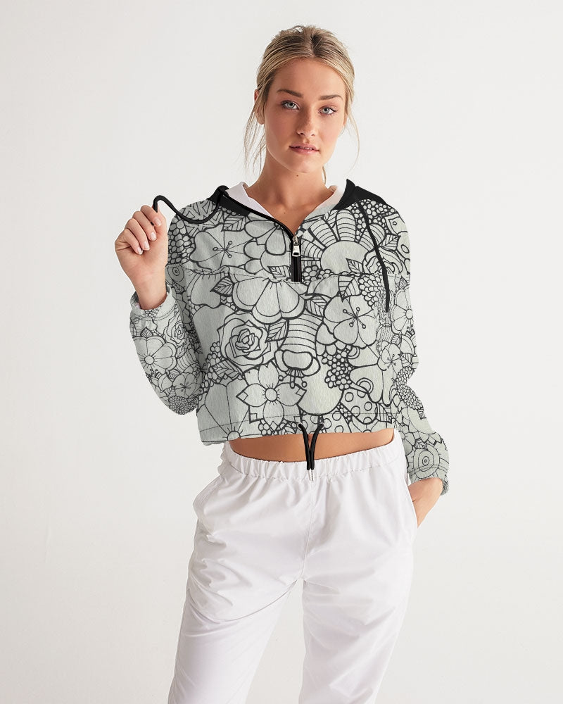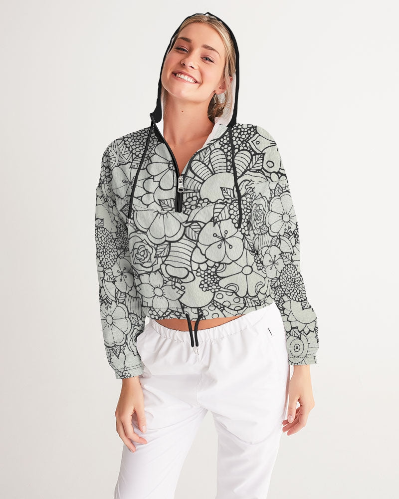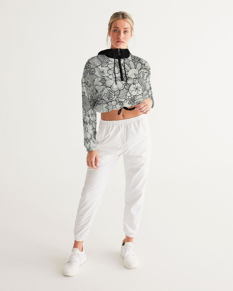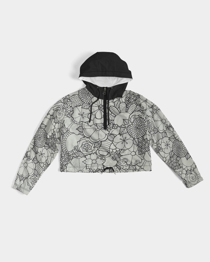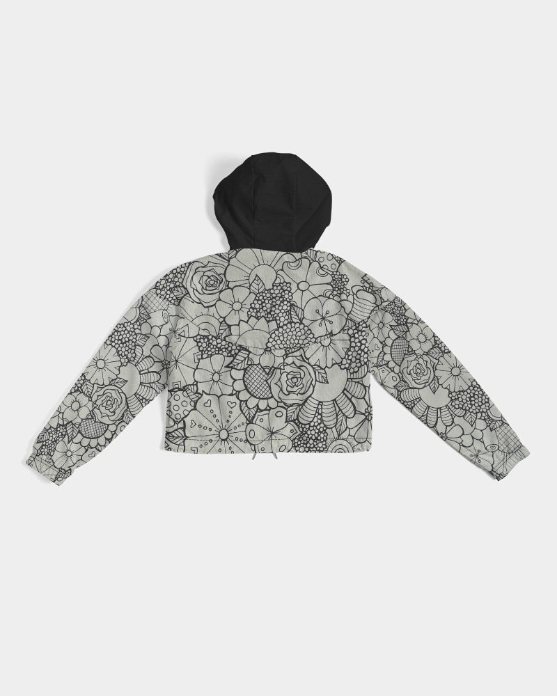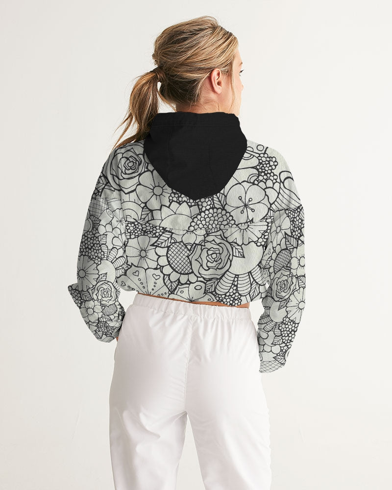 Les Fleurs - B&W Women's Cropped Windbreaker