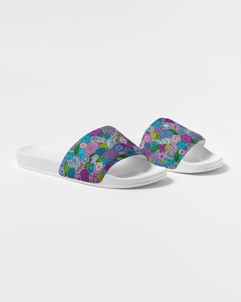 About The ArtLes Fleurs Violettes Les Fleurs Violettes Product DetailsSlip on your Women's Slide Sandals for easy and comfortable style. Made with a soft upper strap that conforms to the natural movement of your foot and a conshioned footbed for all day wear.